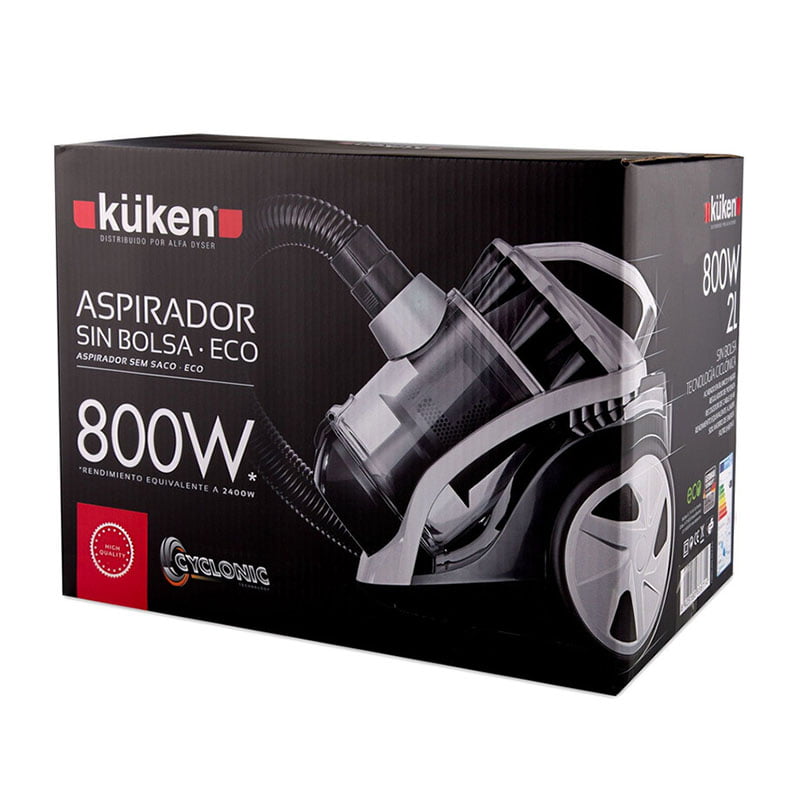 - Aspirador sin bolsa blanco de 800W (rendimiento 2400W) de potencia.