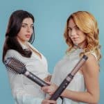 - El moldeador posee la tecnología Coanda, gracias a la cual, al posicionar los dos cilindros rizadores, el aire tiende a seguir la superficie del objeto curvo en lugar de salir en línea recta, por ello, la potencia del aire enrolla el cabello alrededor del moldeador, creando rizos perfectos, sin tener que hacer nada.