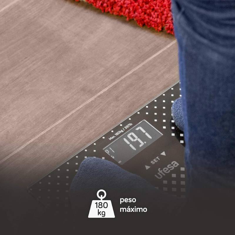 - Con la báscula de baño digital BE1855 controla con exactitud tu peso y mide la evolución de tu dieta y sesiones de ejercicio.