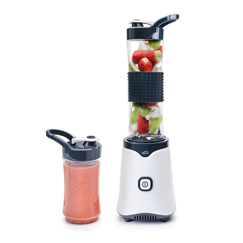- Batidora personal ideal para preparar pequeñas cantidades de cremas, batidos y zumos de frutas y verduras al instante.