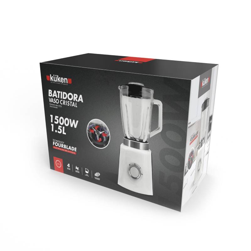- La batidora vaso de cristal con potente motor de 1500W y cuchillas de acero inoxidable de 4 filos es una herramienta perfecta para preparar batidos y purés de manera fácil y rápida.