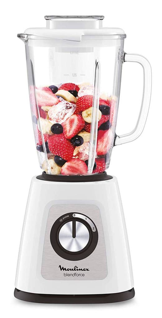 Esta batidora de vaso tritura fácilmente frutas, hielo y vegetales. Ideal batidos cremosos en segundos.