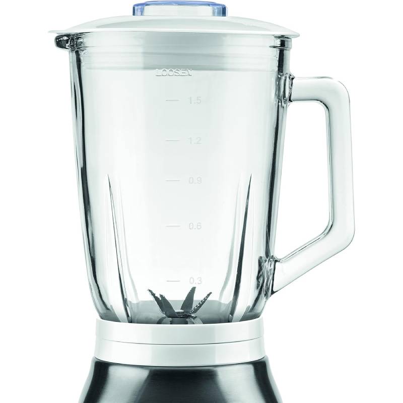 - El tazón tiene una capacidad de 1,5 litros, ofreciendo suficiente espacio para preparar batidos, smoothies, sopas y más.