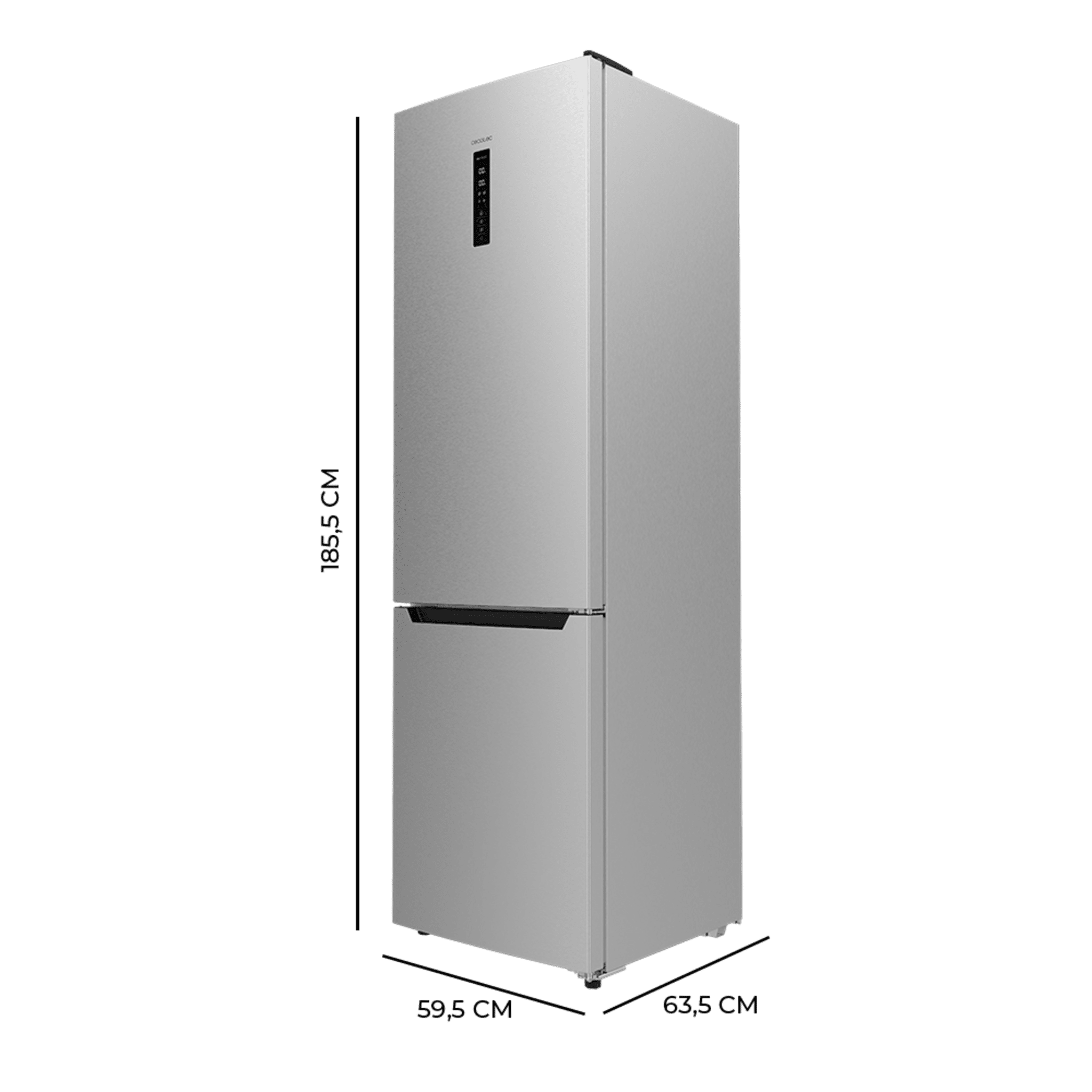 Bolero CoolMarket Combi 322 Inox D Frigorífico Combi Inox con 322 litros de capacidad, 185 de alto y 60 cm de ancho, con motor inverter y clase D. Con sistema Multi Air flow, Total No Frost y 2 cajones para los productos frescos.