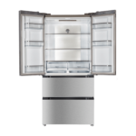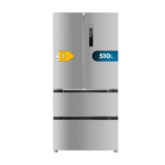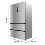 Bolero CoolMarket FD 510 Inox E Frigorífico 4 puertas inox estilo francés, con una gran capacidad de 510 L, 183 cm de alto, 85 cm de ancho, clase energética E y motor Inverter plus. Además, cuenta con distintos modos como Fast Cooling y Fast Freezing, así como sistemas como MultiAirFlow, Total NoFrost, Metal Cooling.