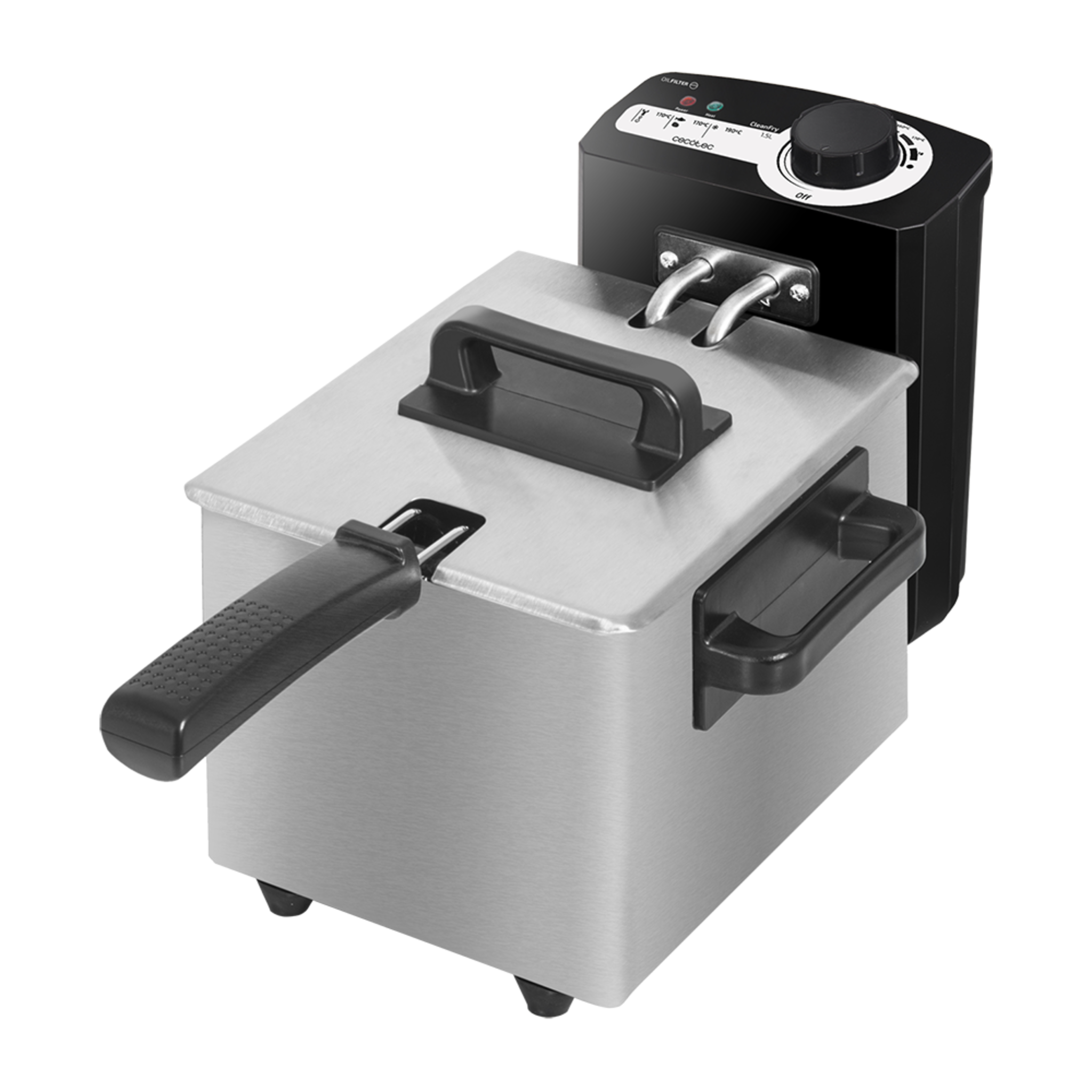 CleanFry 1,5l. Freidora Eléctrica con Aceite de 1000 W, Capacidad de 1,5 L, Temperatura hasta 190ºC, Cubeta Esmaltada apta para Lavavajillas, Filtro OilCleaner que mantiene el Aceite Limpio