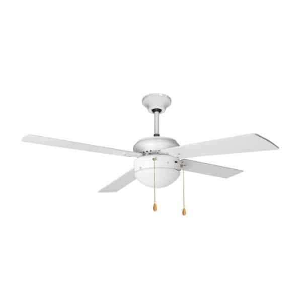 Ventilador de techo + luz con casquillo E-27. Recomendado para habitaciones, comedores, salas de estar. 4 aspas y 3 velocidades
