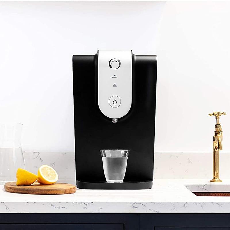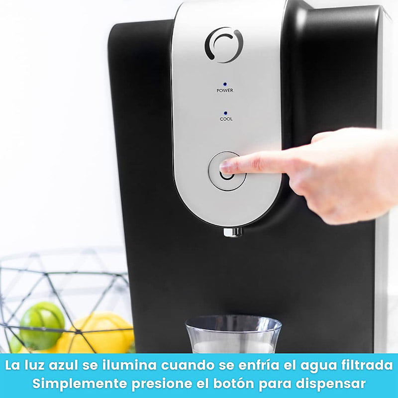 - Este filtro de agua con enfriador, compacto y elegante, puede colocarse sobre su mesa de trabajo para proporcionarle agua fresca filtrada con solo pulsar un botón.