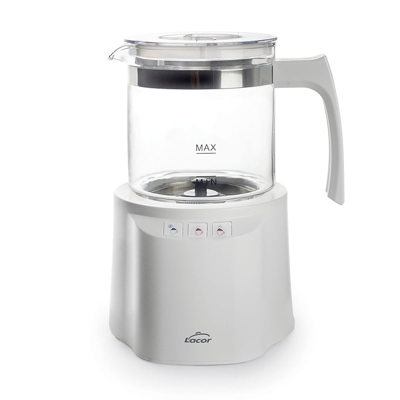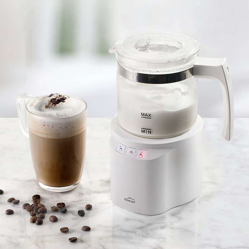 - Espuma fina y cremosa en pocos segundos. Termostato interno. Recipiente de vidrio con base de acero inoxidable.