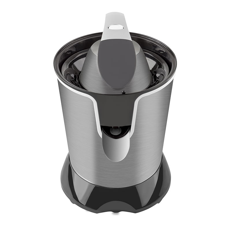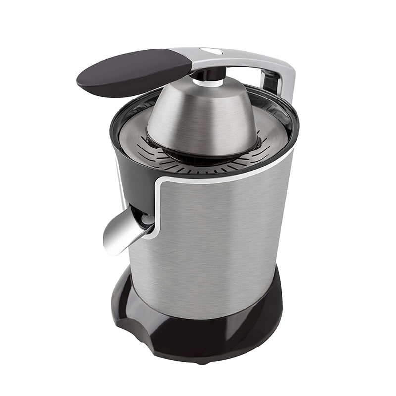 - Exprimidor eléctrico con brazo y boquilla anti goteo de acero inoxidable.
