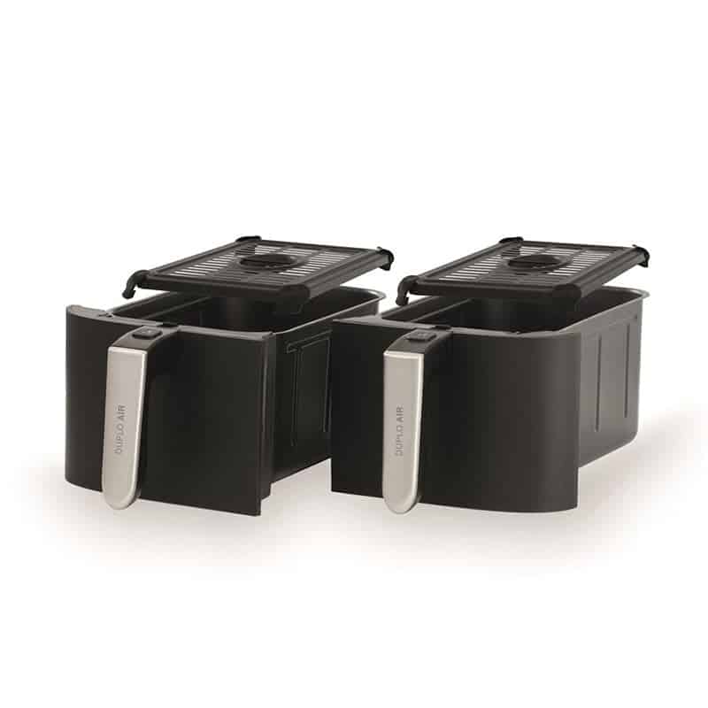 - Ahorra tiempo y energía al cocinar dos porciones de alimentos simultáneamente en cada una de las cubetas de 4,5 litros.