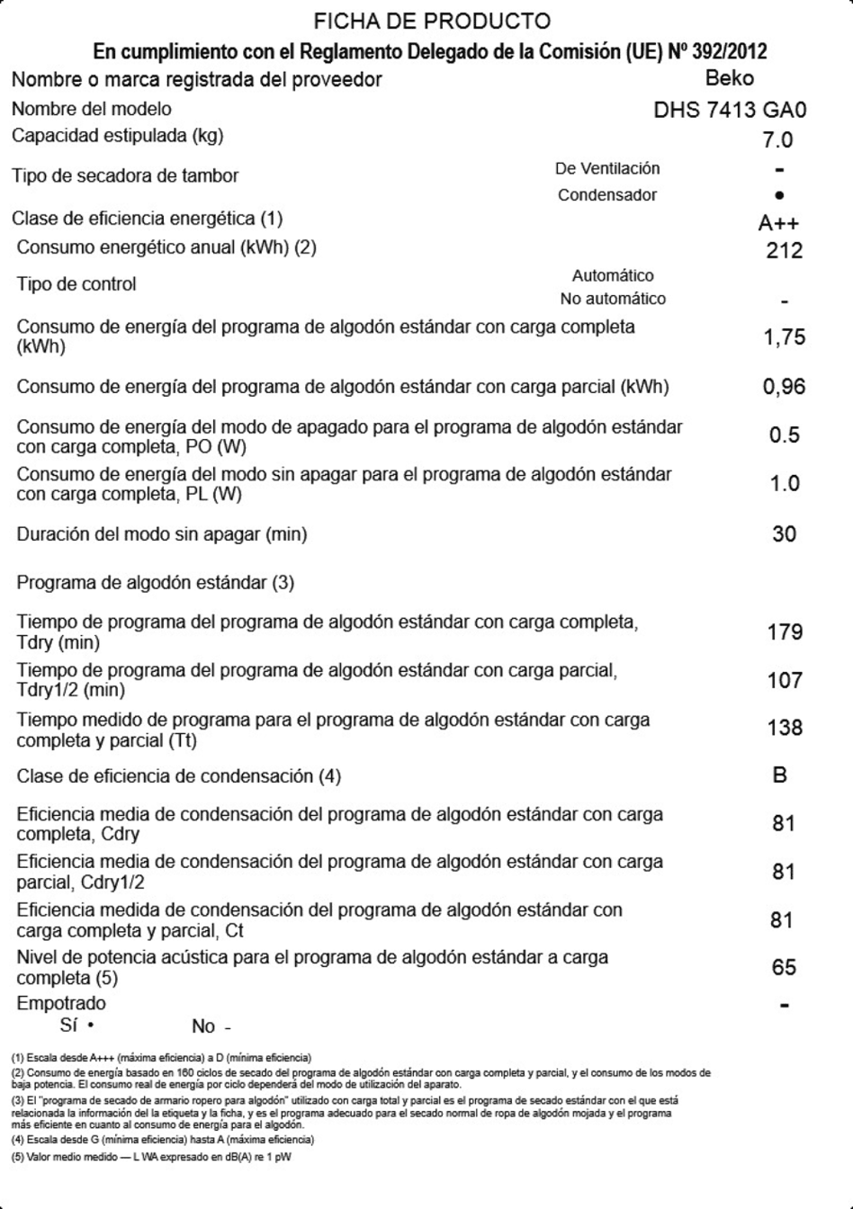 Secadora BEKO DHS7413GA0 7K BC BCA DSP