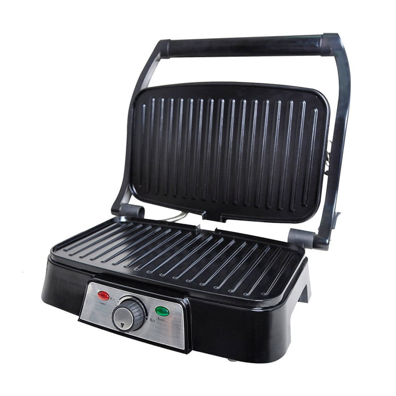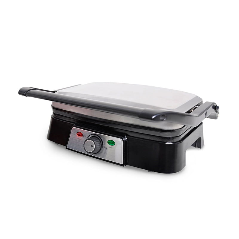 - Sandwichera eléctrica tipo grill con asa de tacto frío para facilitar la apertura.