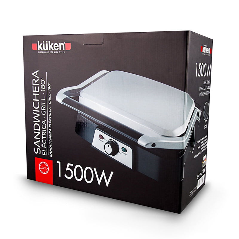 - Sandwichera eléctrica tipo grill con 1500W de potencia.