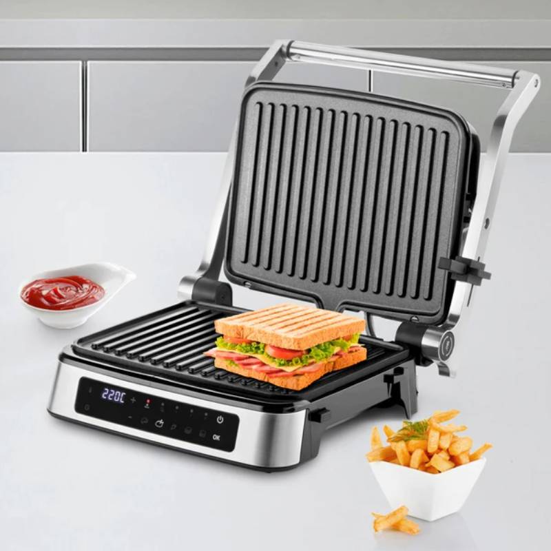 - La apertura del grill de 105º y 180º proporciona una mayor versatilidad, permitiendo incluso cocinar alimentos diferentes en las dos placas de grill a la vez.