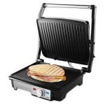 - Este grill dispone de un termostato regulable que permite ajustar la temperatura de acuerdo con el tipo de alimento que se va a cocinar, asegurando un resultado perfecto en todo momento. Además, cuenta con una bandeja recoge-grasas que facilita la limpieza y evita que los jugos de los alimentos caigan sobre la superficie de cocción.