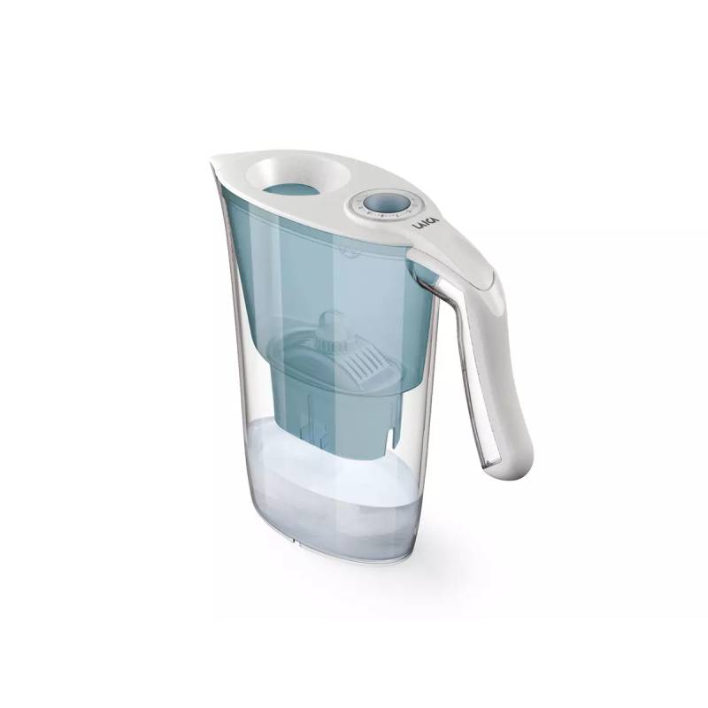 La Jarra Stream mecánica, fabricada en Italia, es una opción ligera y fácil de usar para purificar agua. Con una apertura superior para un llenado rápido, se guarda cómodamente en la puerta de la nevera. Los nuevos temporizadores de colores, sin baterías, son respetuosos con el medio ambiente.