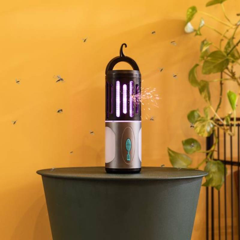 - 3 en 1: mata mosquitos, lámpara con luz a ambos lados y linterna en su parte inferior.