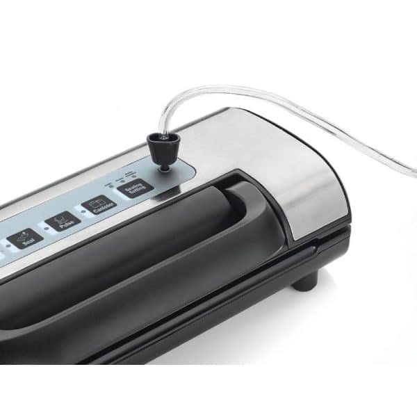 Descripción: La envasadora al vacío con tubería integrada y conector universal ofrece un rendimiento superior para la conservación de alimentos,