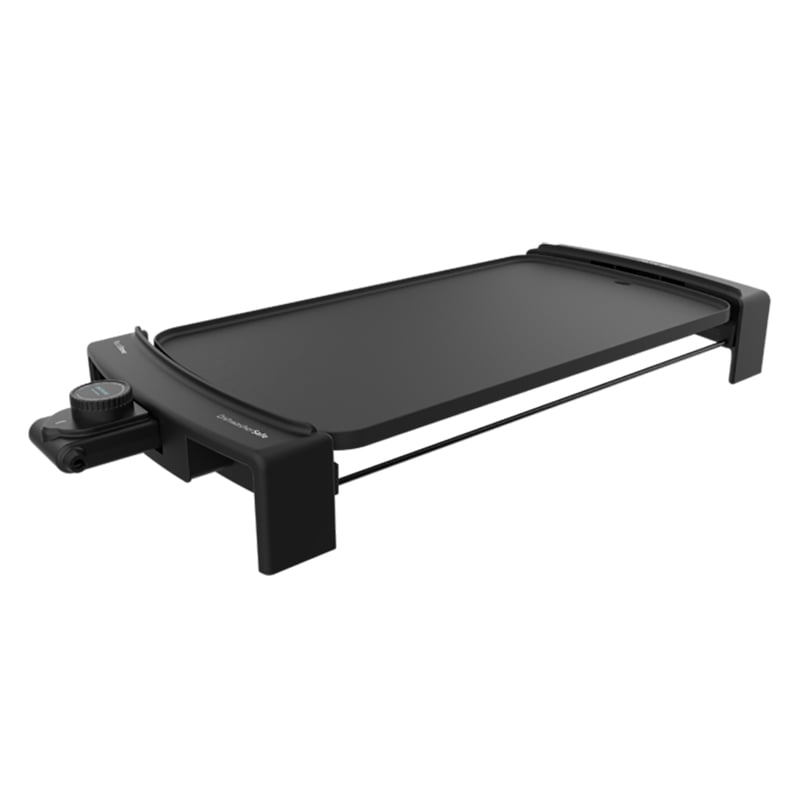 Plancha de asar eléctrica de gran potencia con 2600 W, resistencia en E, termostato regulable y apta para lavavajillas.