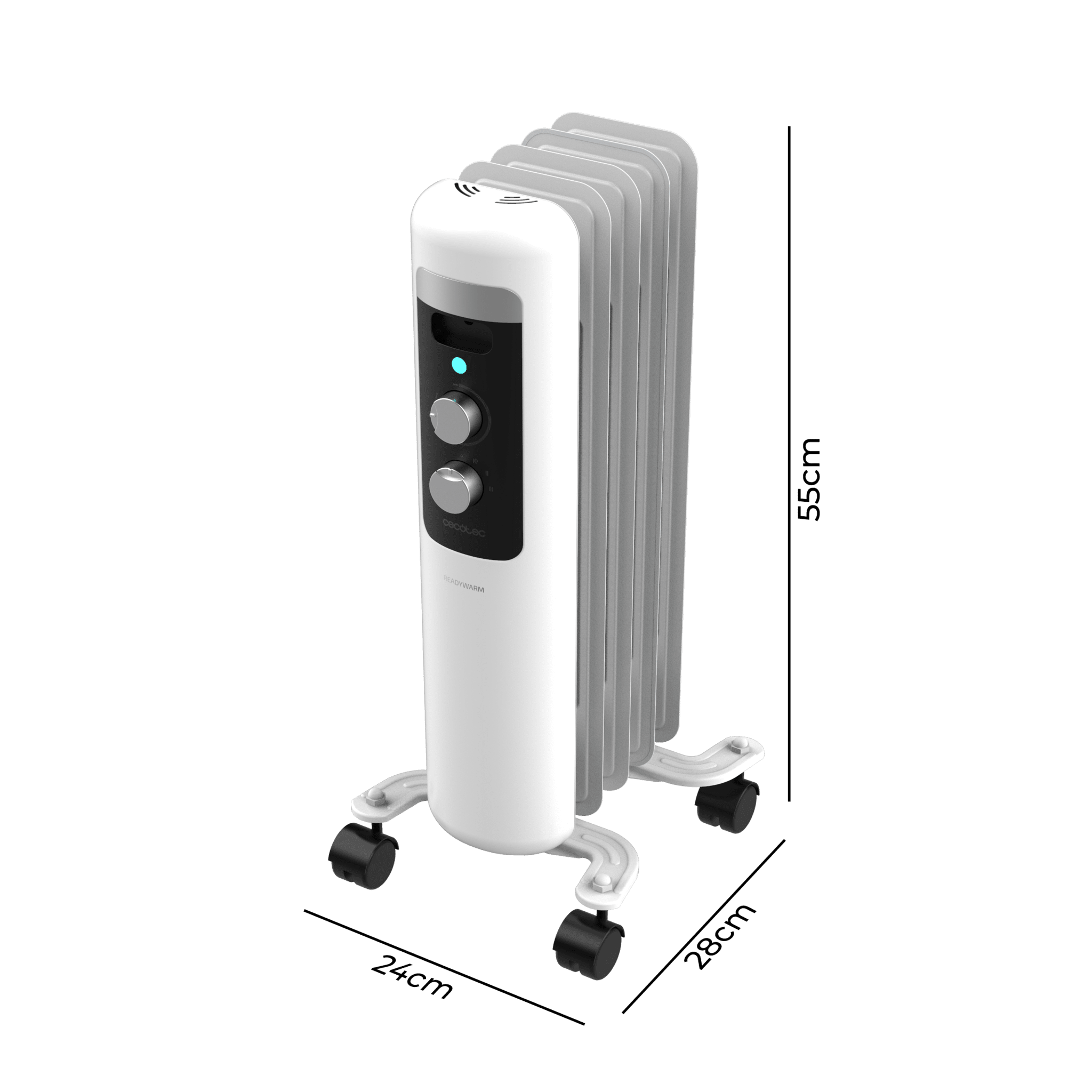 ReadyWarm 550 Space White. Radiador Eléctrico de Aceite con 5 Módulos, Bajo Consumo, 1000 W, 3 Niveles de potencia, Sistema de Seguridad, Ruedas 12 m2