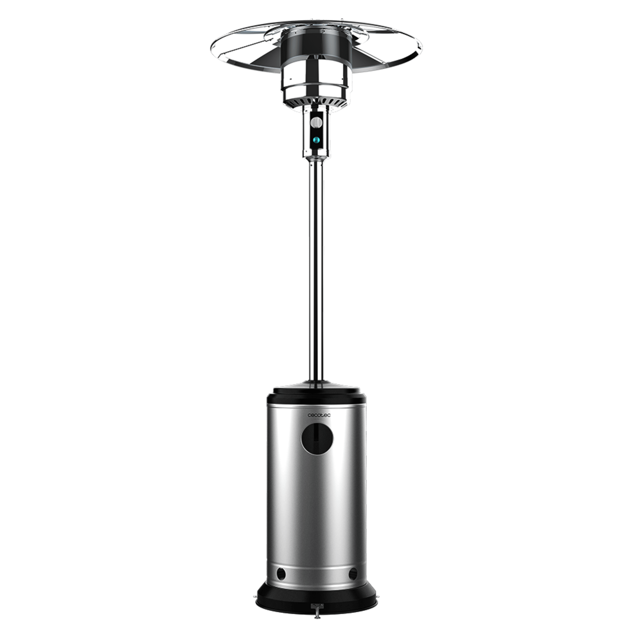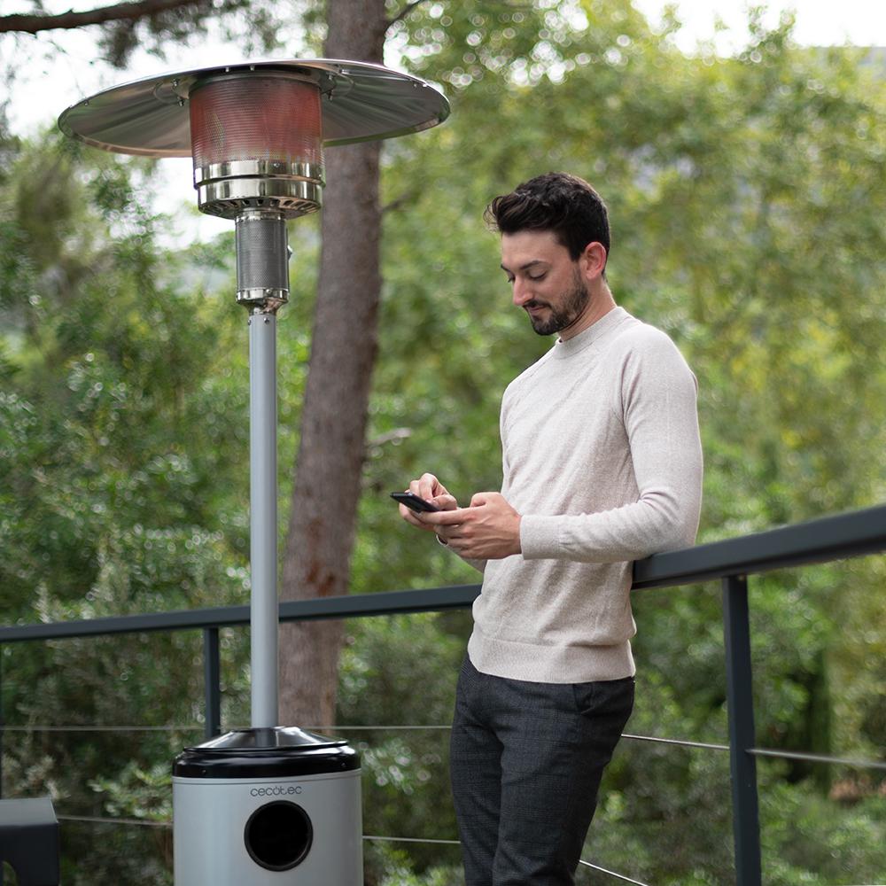 ReadyWarm 8800 Outdoor Microclimate Calefactor exterior a gas butano o propano con forma de seta para una mejor distribución del calor. Ruedas para su desplazamiento y termostato regulable. Diseño de acero de gran durabilidad.