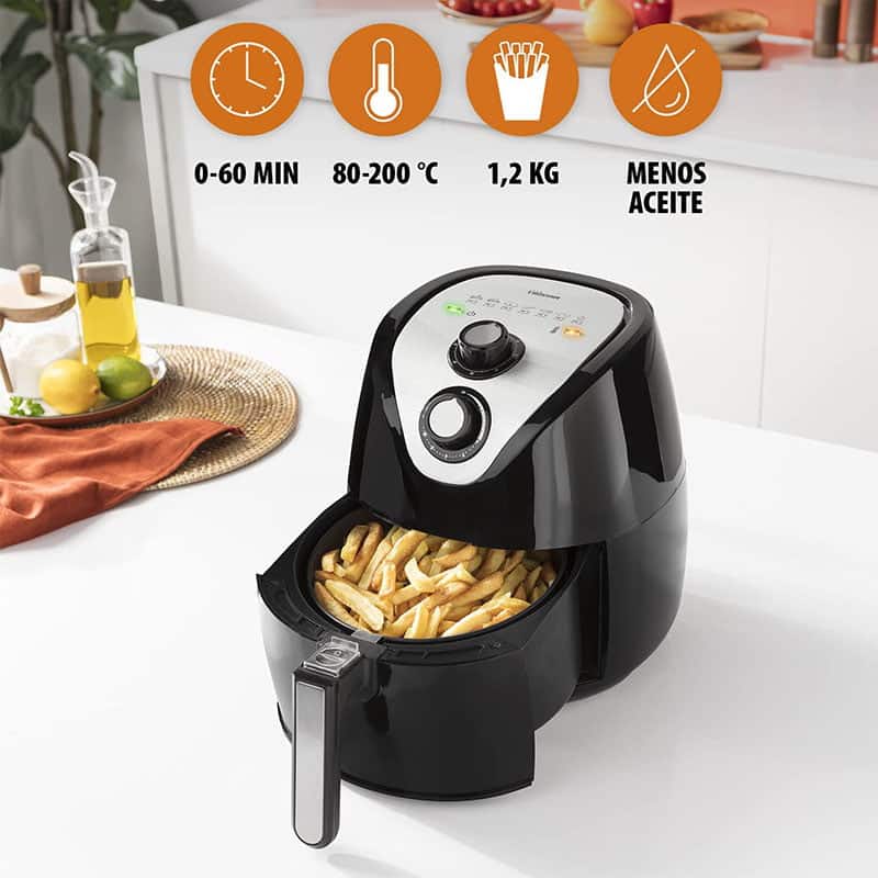 - Ahorra hasta un 66,7% de energía en tu hogar cuando usas esta freidora de aire Tristar; el cálculo está basado en la comparación de un horno convencional de 3300W versus nuestra freidora de aire; no solo el uso de energía será menor, sino que tus alimentos se cocinarán en menos tiempo.