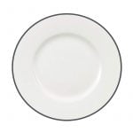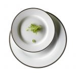 - PRODUCTO – Vajilla completa moderna de porcelana “Nea” de 19 piezas. Color blanco con decoración en una gruesa raya negra