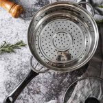 - Agregue vapor cuando sea necesario, la capa inferior se puede usar sola como una sartén o una olla para sopa con tapa de acero inoxidable.