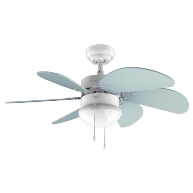 - Ventilador de techo de 50 W y 36” con lámpara, 3 velocidades, 6 aspas reversibles, modo winter-summer y uso sencillo.