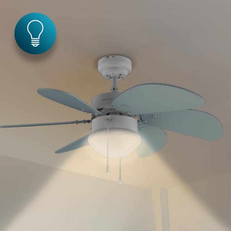 - El ventilador integra una lámpara que lo convierte en un práctico equipo híbrido. Consigue luz y un ambiente perfecto en tu hogar de la forma más eficaz y asequible (bombilla no incluida).