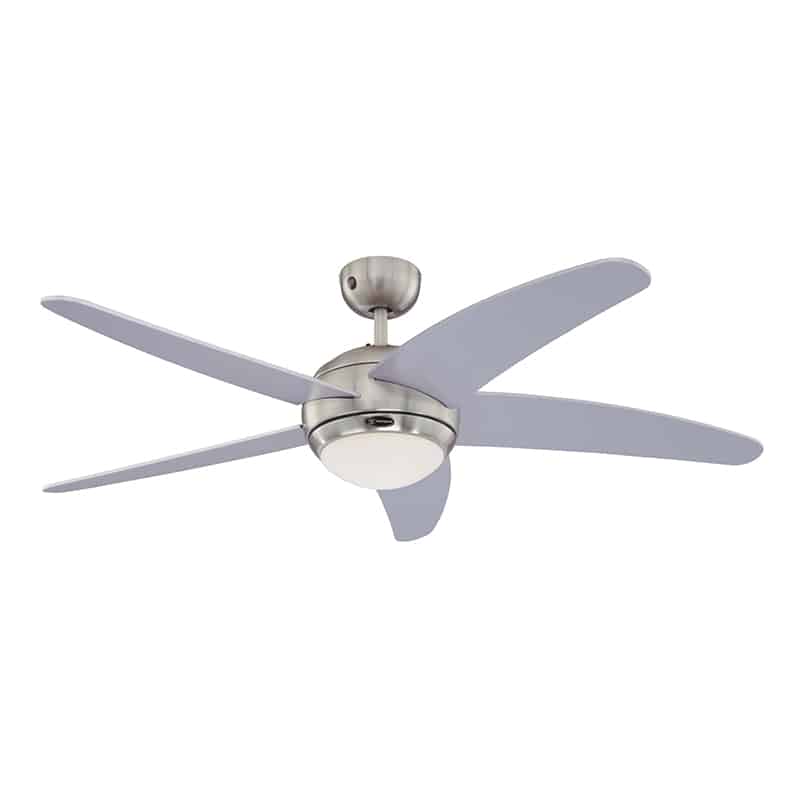 - Interruptor reversible – mantiene el aire fresco en verano al girar las aspas en sentido contrario a las agujas del reloj, y recircula el aire caliente y elimina los puntos fríos en el invierno al girar las aspas al girar las aspas en el sentido inverso.