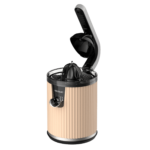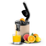 Xqueeze RetroJuice 600 Beige Exprimidor eléctrico de brazo retro para naranjas y cítricos con 600 W de potencia, filtro de acero inoxidable, un cono de plástico, palanca para extraer la pulpa y sistema antigoteo.
